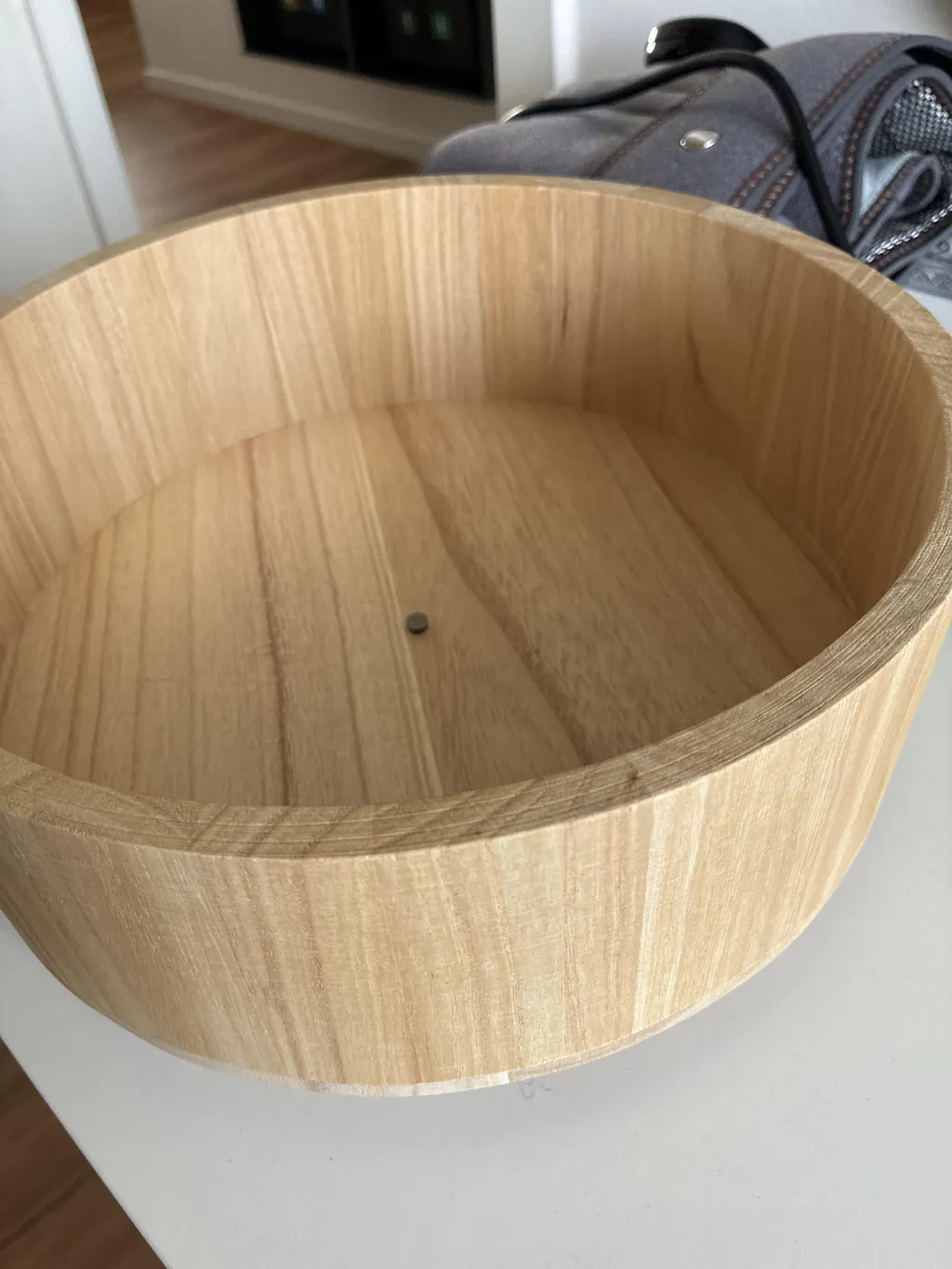 At élé living, we offer rotating dishes in several different shapes and materials. This rotating dish is made of imperial wood and has high edges, which give a more aesthetic and organic expression. The high edge holds the contents together well, and ensures, among other things, that tall things such as bottles do not tip over. The rotating dish is an obvious choice for the cupboards, as what is at the back of the dish can easily be turned forward.